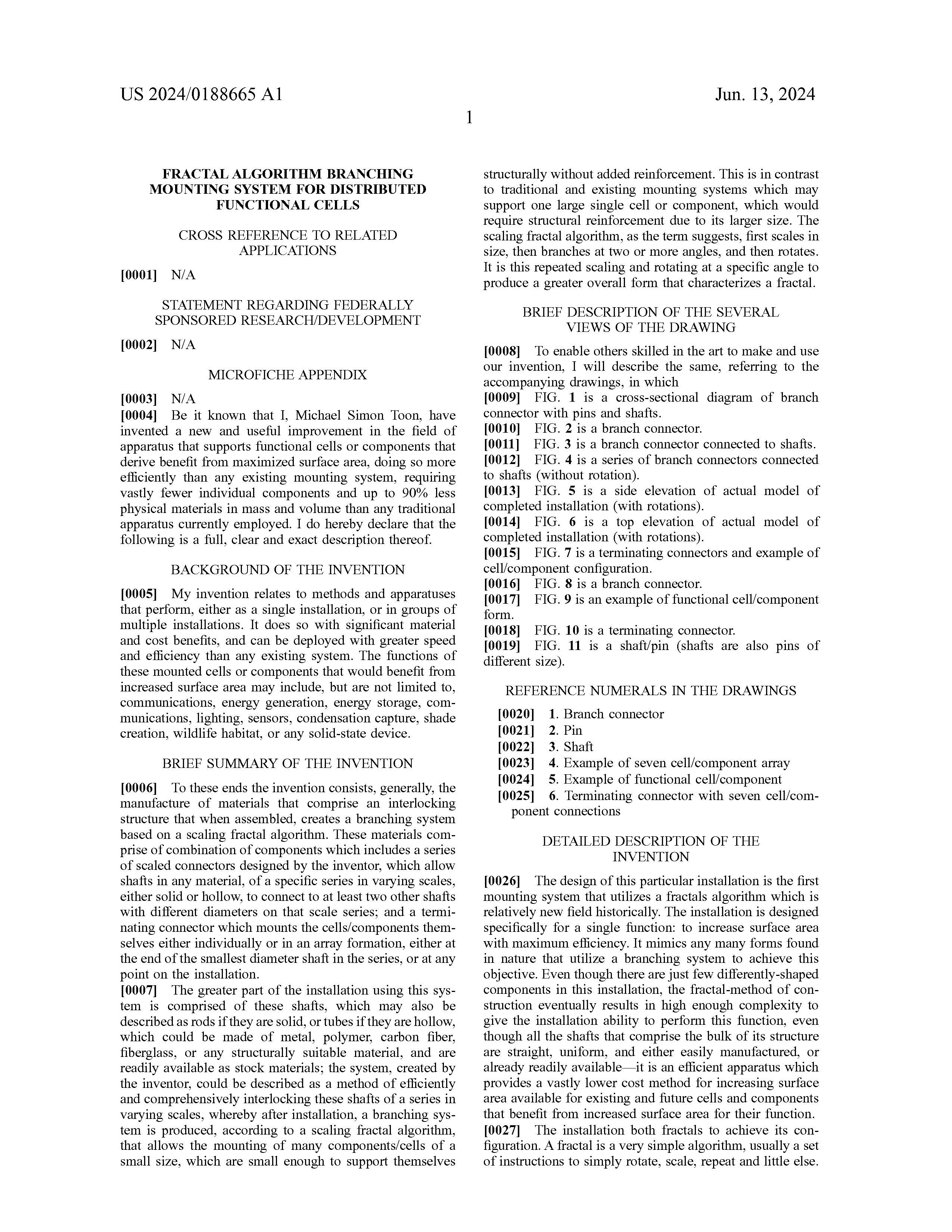 Utility patent, “Fractal Algorithm Branching Mounting System for Distributed Functional Cells,” was granted June 2025: patent.treeofwaterandpower.com